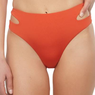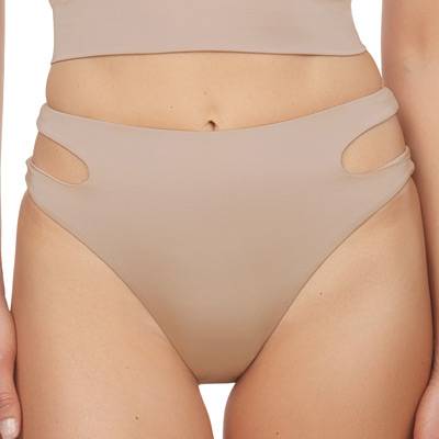 This high waist swimsuit bottom has cutouts at the sides while having a high leg cut to elongate your body.